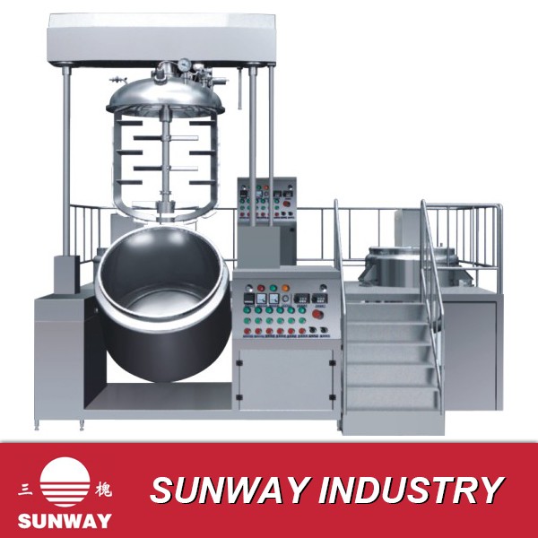 2016年,朝鮮工廠購買我司兩條全自動制管整線和1000L制膏機等設(shè)備 真空制膏機系列廣泛用于牙膏、食品、化工等行業(yè)粘稠音體的制造,即粘稠度較高的物質(zhì)。全套設(shè)備配有制膏機、預(yù)混鍋、膠水鍋、粉料斗、膠體泵、操作平臺。